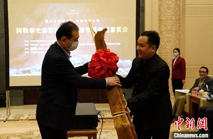 由中國互聯(lián)網(wǎng)新聞中心與中共阿勒泰地委宣傳部主辦的“阿勒泰史前巖畫與毛皮滑雪板鑒賞會”日前在中國國家博物館舉行。