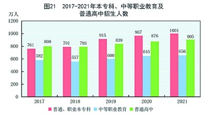[65]普通、職業(yè)本??瓢ㄆ胀ū究?、職業(yè)本科、高職(專科)。2021年高職(??疲┱猩藬?shù)統(tǒng)計(jì)口徑發(fā)生變化,包含五年制高職轉(zhuǎn)入專科招生人數(shù)。