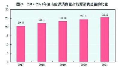 初步核算,全年能源消費(fèi)總量52.4億噸標(biāo)準(zhǔn)煤,比上年增長5.2%。煤炭消費(fèi)量增長4.6%,原油消費(fèi)量增長4.1%,天然氣消費(fèi)量增長12.5%,電力消費(fèi)量增長10.3%。煤炭消費(fèi)量占能源消費(fèi)總量的56.0%,比上年下降0.9個(gè)百分點(diǎn);天然氣、水電、核電、風(fēng)電、太陽能發(fā)電等清潔能源消費(fèi)量占能源消費(fèi)總量的25.5%,上升1.2個(gè)百分點(diǎn)。重點(diǎn)耗能工業(yè)企業(yè)單位電石綜合能耗下降5.3%,單位合成氨綜合能耗與上年持平,噸鋼綜合能耗下降0.4%,單位電解鋁綜合能耗下降2.1%,每千瓦時(shí)火力發(fā)電標(biāo)準(zhǔn)煤耗下降0.5%。全國萬元國內(nèi)生產(chǎn)總值二氧化碳排放[78]下降3.8%。(見圖24)