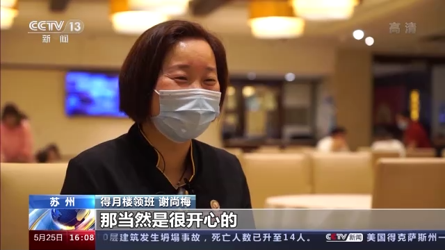 得月樓領班 謝尚梅:可以堂食可以上班了,當然是很開心的。這樣的話就多一份收入了,多點收入開支上面也要富余一點。