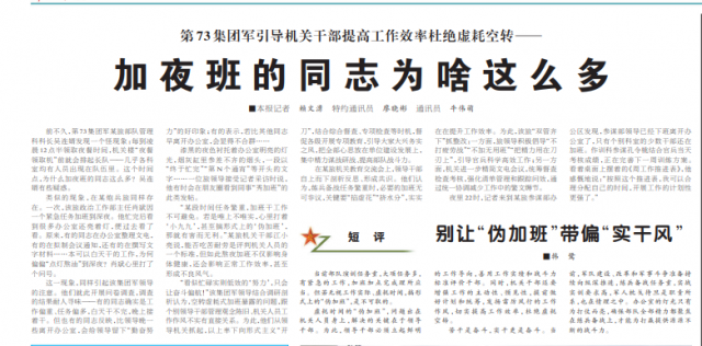 前兩天,《解放軍報(bào)》發(fā)了一篇題為《加夜班的同志為啥這么多》的文章,在不少人的朋友圈傳播。
