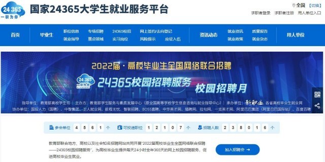 近日,教育部聯(lián)合地方、高校以及社會(huì)知名招聘網(wǎng)站共同開(kāi)展“2022屆高校畢業(yè)生全國(guó)網(wǎng)絡(luò)聯(lián)合招聘——24365校園招聘服務(wù)”,為高校畢業(yè)生提供每天24小時(shí)全年365天的網(wǎng)上校園招聘服務(wù),促進(jìn)高校畢業(yè)生就業(yè)。高校畢業(yè)生和用人單位可通過(guò)國(guó)家24365大學(xué)生就業(yè)服務(wù)平臺(tái)查詢(xún)相關(guān)信息。