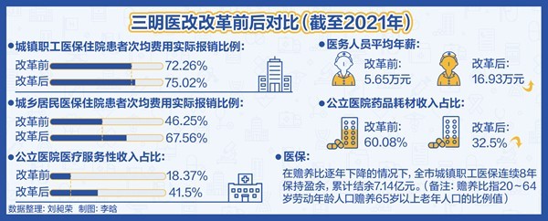 此外,通過實行醫(yī)保總額付費、結余留用激勵機制,緊密型縣域醫(yī)共體將更多工作轉向健康管理,試點地區(qū)參保居民住院率從2019年的24%下降至2020年的15%,醫(yī)保實際報銷比提高到61.2%,好于全國平均水平,群眾醫(yī)療費用負擔減輕。