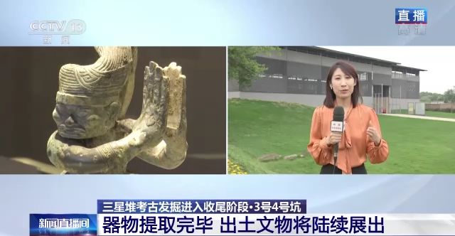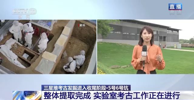 總臺央視記者 任梅梅:我身后就是三星堆遺址考古發(fā)掘大棚,目前6個新發(fā)現(xiàn)的祭祀坑考古發(fā)掘工作總體已經(jīng)開始進入收尾階段,其中3號坑和4號坑已經(jīng)完成現(xiàn)場的發(fā)掘工作,5號坑和6號坑整體提取進入實驗室發(fā)掘階段。