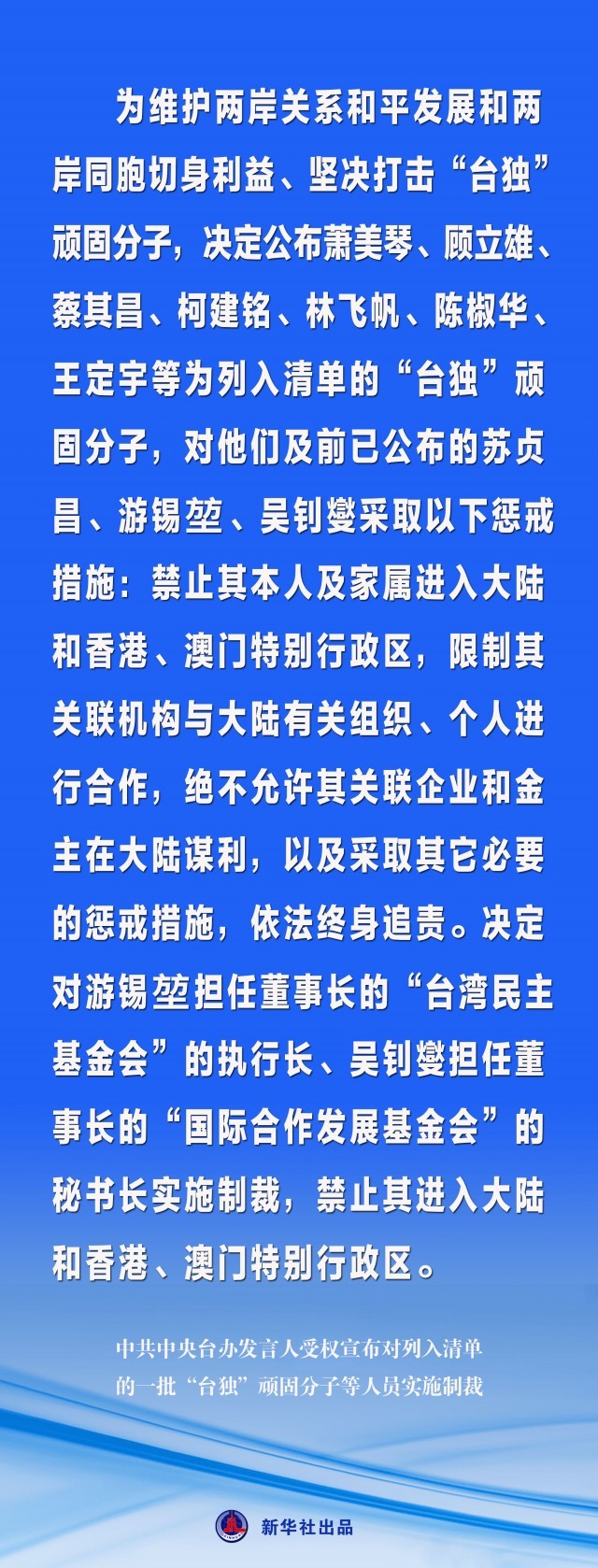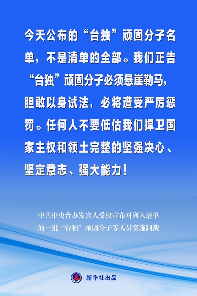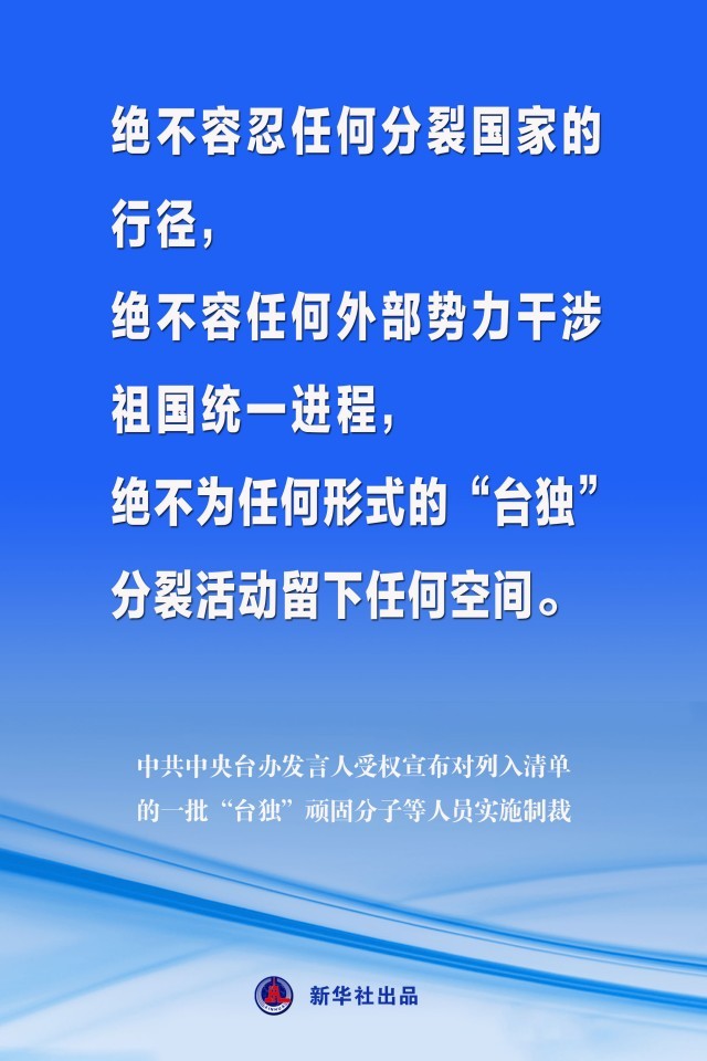 海報丨中共中央臺辦發(fā)言人受權宣布對列入清單的一批“臺獨”頑固分子等人員實施制裁