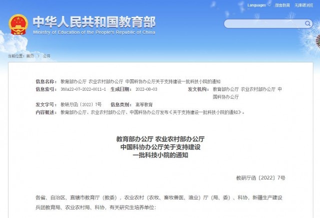 央視網(wǎng)消息:8月23日,教育部辦公廳、農(nóng)業(yè)農(nóng)村部辦公廳、中國科協(xié)辦公廳發(fā)布《關(guān)于支持建設(shè)一批科技小院的通知》。