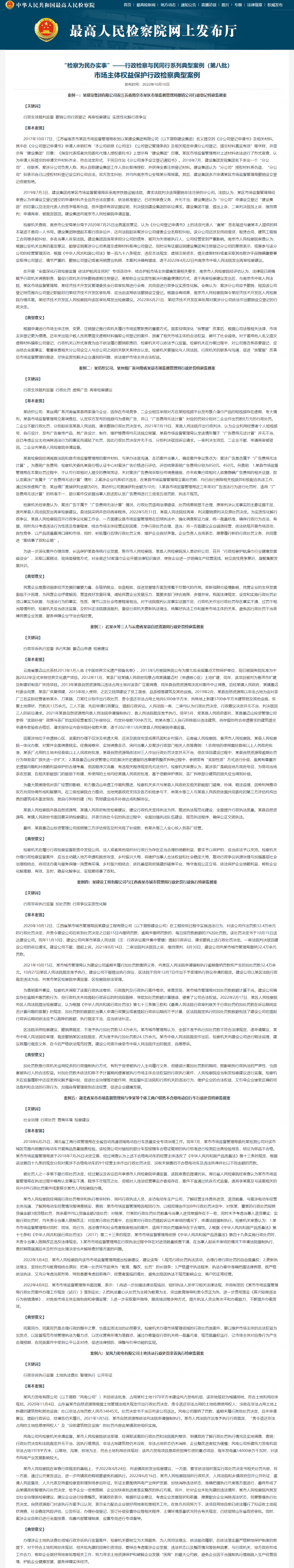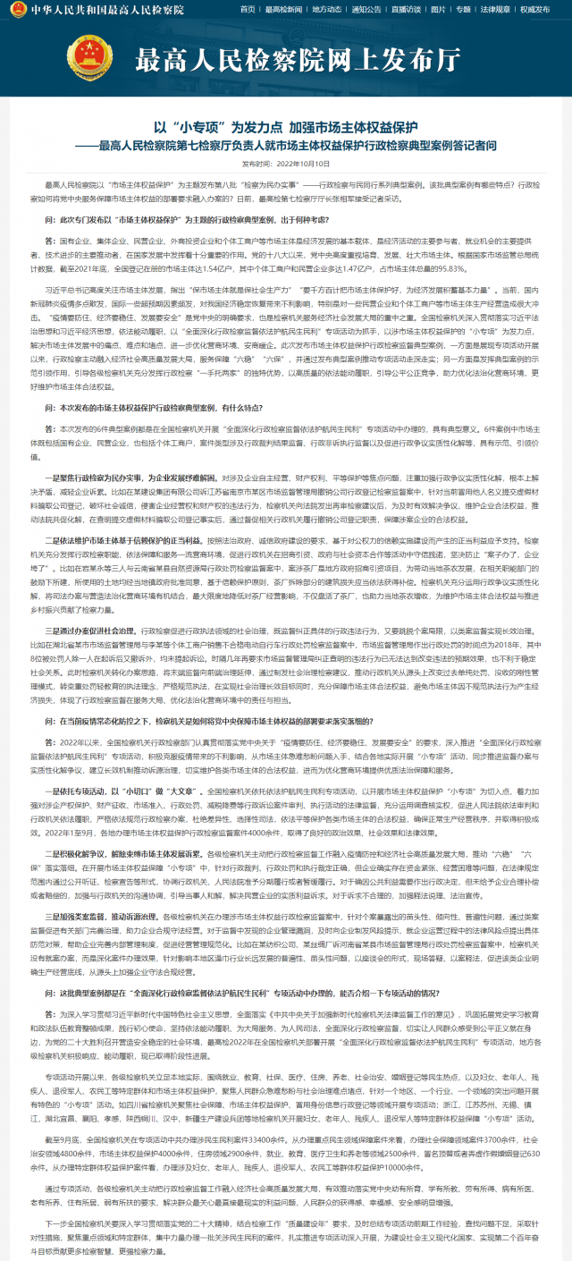央視網(wǎng)消息:據(jù)中華人民共和國最高人民檢察院網(wǎng)站消息,10月10日,最高人民檢察院以“市場主體權(quán)益保護(hù)”為主題發(fā)布第八批“檢察為民辦實(shí)事”——行政檢察與民同行系列典型案例。