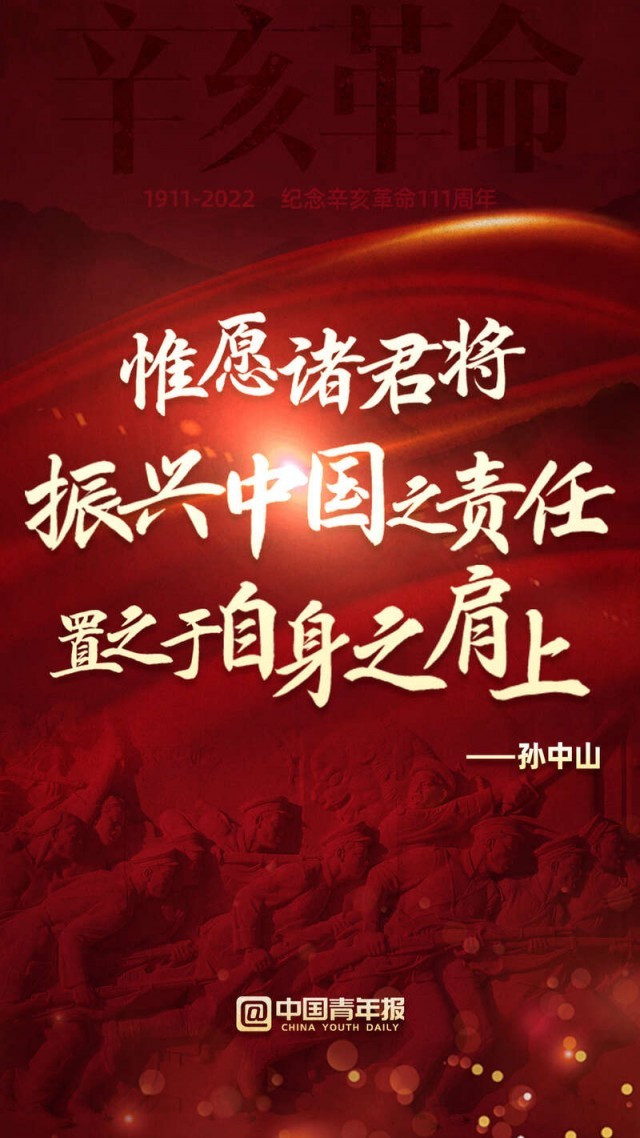 111年前,以孫中山先生為代表的革命黨人發(fā)動了辛亥革命,近代以來中國發(fā)生的深刻社會變革由此拉開新的一幕。今天,讓我們學(xué)習(xí)和弘揚(yáng)革命先驅(qū)為振興中華而矢志不渝的崇高精神,為實現(xiàn)中華民族偉大復(fù)興而共同奮斗!