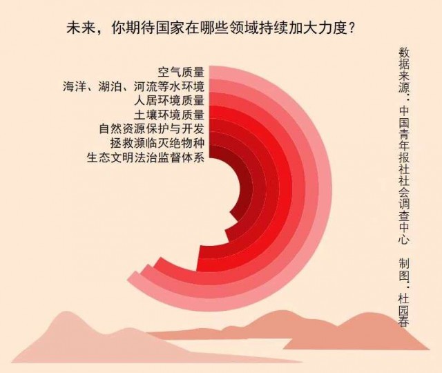 上周,中國青年報社社會調(diào)查中心聯(lián)合問卷網(wǎng)(wenjuan.com),對2005名受訪者進行的一項調(diào)查顯示,受訪者期待未來在空氣質(zhì)量、水環(huán)境質(zhì)量、人居環(huán)境質(zhì)量等領(lǐng)域持續(xù)加大治理力度。94.9%的受訪者相信我國生態(tài)環(huán)境質(zhì)量會持續(xù)向好。