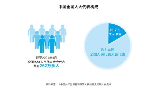 中國從本國國情實際出發(fā),不斷發(fā)展全過程人民民主,完善人民當家作主制度體系,建立了人民代表大會制度、中國共產(chǎn)黨領導的多黨合作和政治協(xié)商制度、民族區(qū)域自治制度和基層群眾自治制度,為人民享有更加廣泛、更加充分、更加全面的民主權利奠定了堅實的制度基礎。