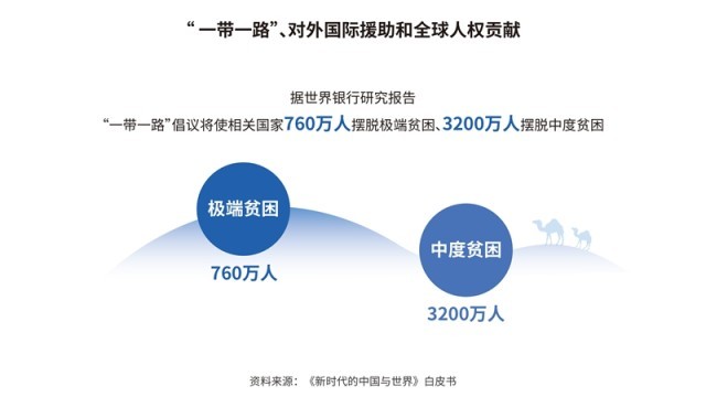 中國先后批準或加入了30余項國際人權文書,其中包括6項聯(lián)合國核心人權條約;累計共向166個國家和國際組織提供了援助,派遣60多萬名援助人員;多次無條件免除重債窮國和最不發(fā)達國家對華到期政府無息貸款債務。在聯(lián)合國維和行動中,中國是安理會常任理事國第一大出兵國,30多年來累計派出維和官兵5萬余人次。共建“一帶一路”已成為助力各國發(fā)展、深受世界歡迎的新興國際公共產(chǎn)品,據(jù)世界銀行研究報告,到2030年,將使相關國家760萬人擺脫極端貧困、3200萬人擺脫中度貧困。新冠肺炎疫情暴發(fā)以來,中國努力促進新冠疫苗在全球范圍內(nèi)公平合理分配,成為全球?qū)ν馓峁┮呙鐢?shù)量最多的國家。