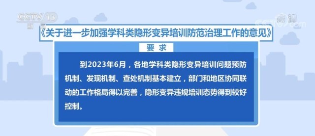 《意見》要求,到2023年6月,各地學科類隱形變異培訓問題預防機制、發(fā)現(xiàn)機制、查處機制基本建立,部門和地區(qū)協(xié)同聯(lián)動的工作格局得以完善,隱形變異違規(guī)培訓態(tài)勢得到較好控制。到2024年6月,學科類隱形變異培訓防范治理的長效機制得到健全,治理工作態(tài)勢持續(xù)向好,隱形變異培訓得以全面清除。