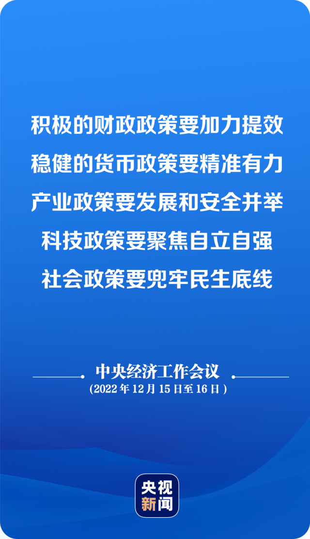 中央經(jīng)濟工作會議要求,明年要堅持穩(wěn)字當頭、穩(wěn)中求進,繼續(xù)實施積極的財政政策和穩(wěn)健的貨幣政策,加大宏觀政策調(diào)控力度,加強各類政策協(xié)調(diào)配合,形成共促高質(zhì)量發(fā)展合力。