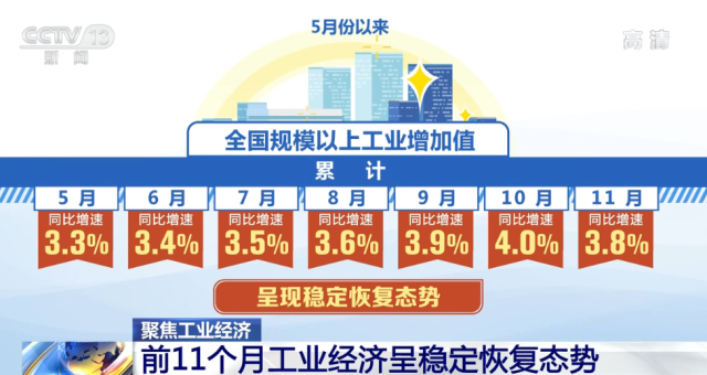前11個月工業(yè)經(jīng)濟(jì)呈穩(wěn)定恢復(fù)態(tài)勢 有力支撐了國民經(jīng)濟(jì)平穩(wěn)運行
