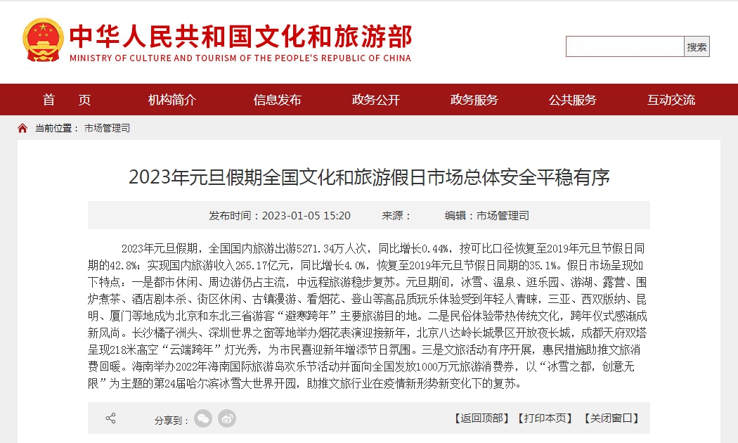 官方:元旦假期國(guó)內(nèi)出游5271.34萬(wàn)人次 體現(xiàn)三大特點(diǎn)