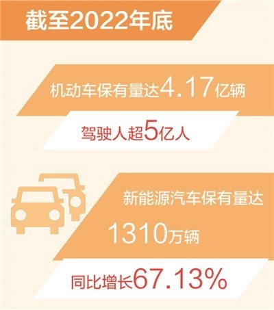 本報(bào)北京1月11日電 (記者張?zhí)炫啵┕膊?1日發(fā)布統(tǒng)計(jì)顯示,2022年全國(guó)機(jī)動(dòng)車保有量達(dá)4.17億輛,其中汽車3.19億輛;全國(guó)機(jī)動(dòng)車駕駛?cè)诉_(dá)5.02億人,其中汽車駕駛?cè)?.64億人。2022年全國(guó)新注冊(cè)登記機(jī)動(dòng)車3478萬(wàn)輛,新領(lǐng)證駕駛?cè)?923萬(wàn)人。
