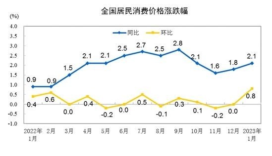 中新網(wǎng)2月10日電(中新財經(jīng)記者 謝藝觀)10日,國家統(tǒng)計局公布2023年1月份全國居民消費價格(CPI)數(shù)據(jù)。受春節(jié)效應(yīng)和疫情防控政策優(yōu)化調(diào)整等因素影響,1月份CPI同比上漲2.1%,重回“2時代”。