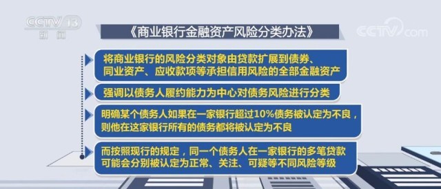 辦法還要求商業(yè)銀行應至少每季度對全部金融資產進行一次風險分類,有效防范化解信用風險。這一辦法將從今年7月1日起施行。