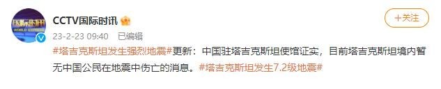 央視網(wǎng)消息:據(jù)@CCTV國際時(shí)訊 微博,中國駐塔吉克斯坦使館證實(shí),目前塔吉克斯坦境內(nèi)暫無中國公民在地震中傷亡的消息。