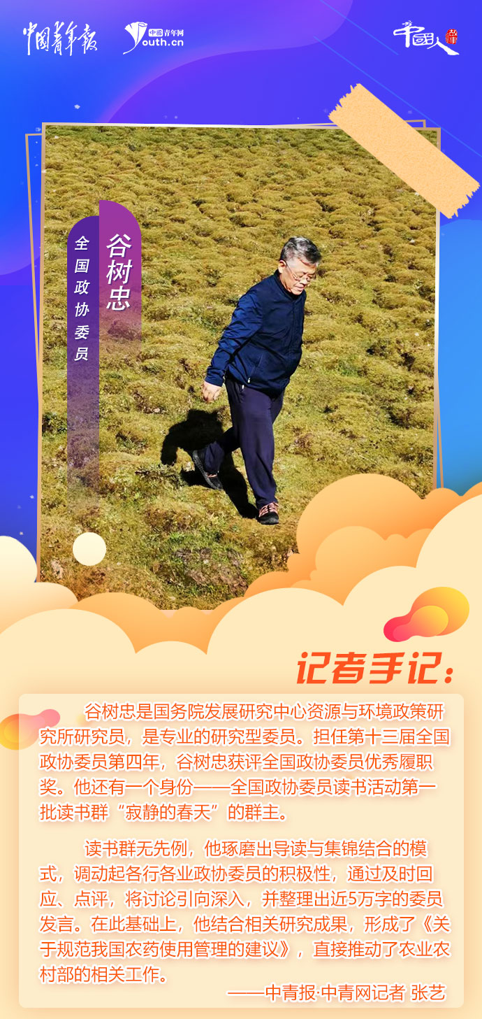 他常來奧森公園鍛煉,一圈5公里,先慢后快,他有自己的節(jié)奏。他是國務院發(fā)展研究中心資源與環(huán)境政策研究所研究員,是專業(yè)的研究型委員。擔任第十三屆全國政協(xié)委員第四年,谷樹忠獲評全國政協(xié)委員優(yōu)秀履職獎。他還有一個身份——全國政協(xié)委員讀書活動第一批讀書群“寂靜的春天”的群主。