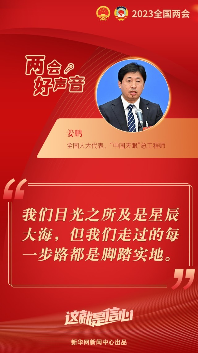 “我們目光之所及是星辰大海,但我們走過的每一步路都是腳踏實(shí)地?!?日下午舉行的第二場(chǎng)“代表通道”采訪活動(dòng)中,全國人大代表、“中國天眼”總工程師姜鵬感慨道。