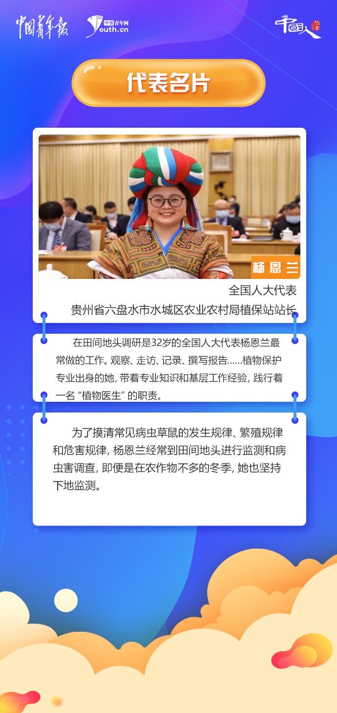 在田間地頭調(diào)研是32歲的全國人大代表?xiàng)疃魈m最常做的工作。觀察、走訪、記錄、撰寫報(bào)告……植物保護(hù)專業(yè)出身的她,帶著專業(yè)知識和基層工作經(jīng)驗(yàn),踐行著一名“植物醫(yī)生”的職責(zé)。