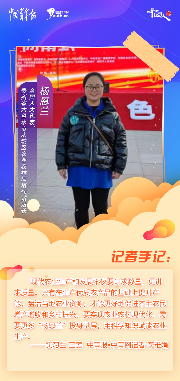 采訪楊恩蘭時(shí),正值六盤水市兩會召開,楊恩蘭忙得不可開交,白天開完代表大會后,晚上又馬不停蹄地回到酒店接受采訪。從學(xué)業(yè)聊到工作,從愛情聊到生活,這名90后出身農(nóng)村,到廣州接受高等教育,又放棄在廣州穩(wěn)定的工作,回到成長的地方。她常說,自己研究生階段所學(xué)專業(yè)更適合在基層做農(nóng)業(yè)推廣,只有深入到田間、與農(nóng)戶交流,才能最大程度地發(fā)揮所長。