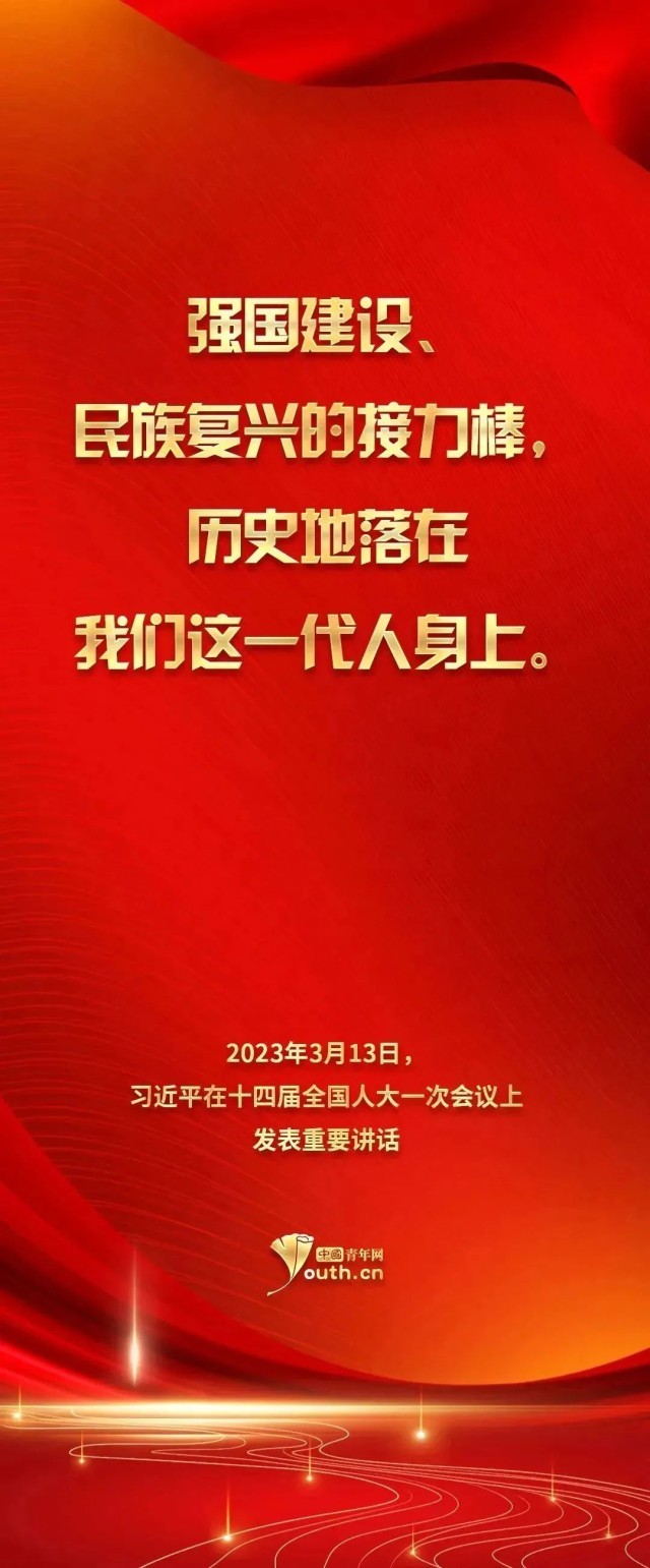 “強(qiáng)國(guó)建設(shè)、民族復(fù)興的接力棒,歷史地落在我們這一代人身上?!绷?xí)近平主席的講話不僅為我們?cè)谛碌臍v史方位中、在新的發(fā)展階段上指明了前進(jìn)的方向,也帶領(lǐng)我們這一代人舉起了接續(xù)奮斗的偉大旗幟。
