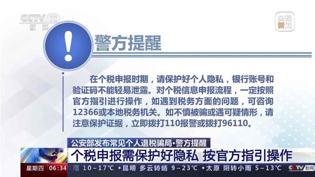 警方提醒:個(gè)稅申報(bào)需保護(hù)好隱私,按官方指引操作