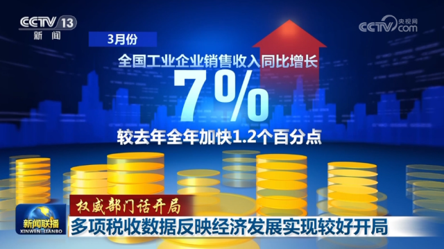 央視網(wǎng)消息(新聞聯(lián)播):在國(guó)新辦今天(4月6日)舉行的“權(quán)威部門話開局”系列主題新聞發(fā)布會(huì)上,國(guó)家稅務(wù)總局負(fù)責(zé)人表示,多項(xiàng)稅收數(shù)據(jù)反映出我國(guó)經(jīng)濟(jì)發(fā)展實(shí)現(xiàn)了較好開局。