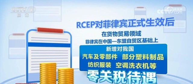 據(jù)了解,我國是菲律賓最大貿(mào)易伙伴、第一大進(jìn)口來源地和第三大出口市場。RCEP對菲律賓正式生效后,在貨物貿(mào)易領(lǐng)域,菲律賓在中國—東盟自貿(mào)區(qū)基礎(chǔ)上,新增對我國汽車及零部件、部分塑料制品、紡織服裝、空調(diào)洗衣機(jī)等,零關(guān)稅待遇。