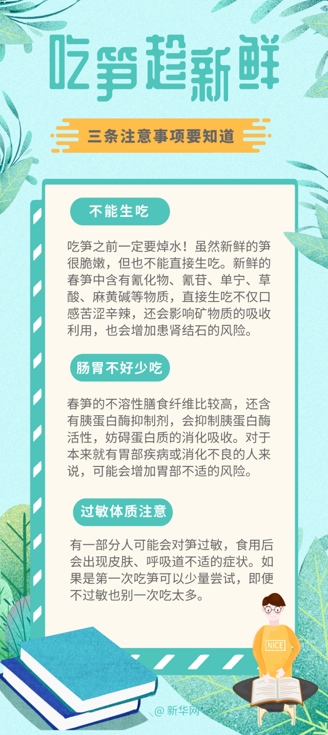 春季吃筍正當(dāng)時(shí),但春筍吃不對也會帶來健康風(fēng)險(xiǎn)。近日“男子貪吃春筍后嘔血又暈厥”的新聞就給人們提了個(gè)醒,那吃筍有哪些注意事項(xiàng)呢?