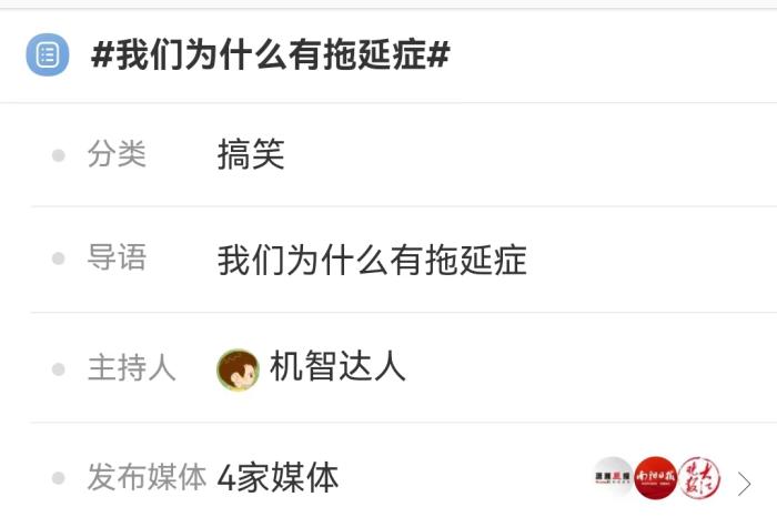 不過,年輕人使用這個梗時的狀態(tài),往往是“半真半假”:一方面為自己的“拖延”感到焦慮、自責(zé),所以選擇勇敢地說出來,并且試圖在同道中人的回應(yīng)里尋找共鳴;另一方面,“拖延癥”并不是一個真的讓人感到萬分愧疚的詞匯,人們在玩梗時甚至可能帶上些許調(diào)侃色彩,在一定程度上減輕心理負擔(dān),何樂而不為?