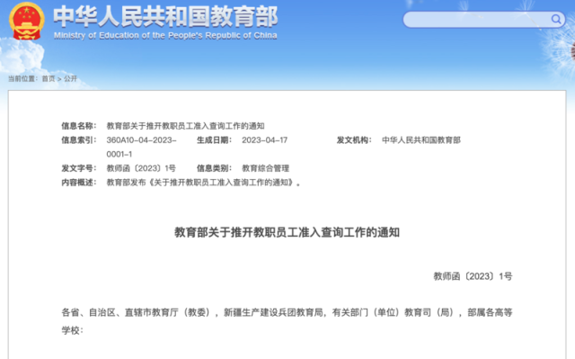 教育部部署教職員工準(zhǔn)入查詢制度:對師德違規(guī)問題“零容忍”
