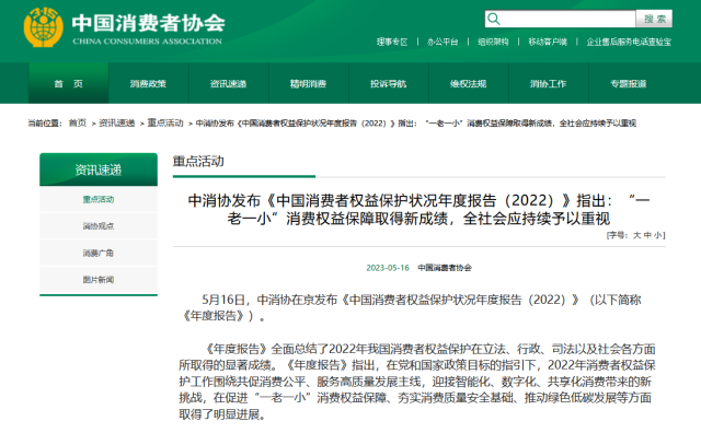 中消協(xié)發(fā)布2022年消保年度報(bào)告:網(wǎng)游低俗化、適老建設(shè)等四方面問(wèn)題仍突出