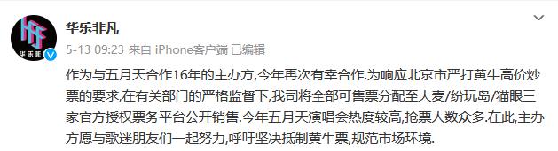 五月天北京演唱會(huì)主辦方華樂(lè)非凡微博截圖