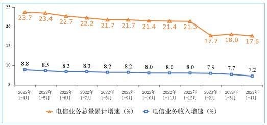 工信部:2023年1—4月份電信業(yè)務(wù)收入同比增長7.2%