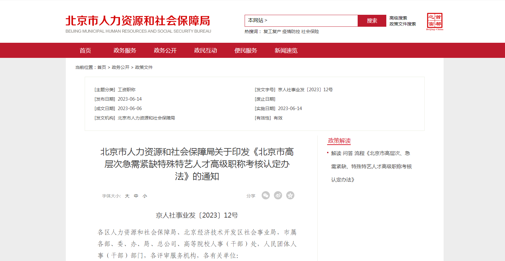 6月14日,北京市人力資源和社會保障局發(fā)布《關(guān)于進一步加強和改進職稱工作的通知》及相關(guān)配套措施,明確對高層次、急需緊缺人才等不拘一格“評”人才。
