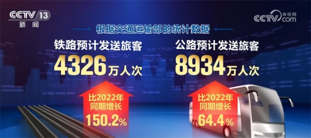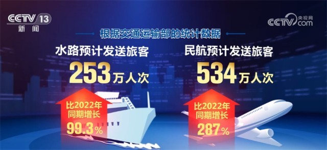 端午假期,全國鐵路、公路、水路、民航預計共發(fā)送旅客14047萬人次,比2022年同期增長89.1%。其中,鐵路預計發(fā)送旅客4326萬人次,比2022年同期增長150.2%;公路預計發(fā)送旅客8934萬人次,比2022年同期增長64.4%;水路預計發(fā)送旅客253萬人次,比2022年同期增長99.3%;民航預計發(fā)送旅客534萬人次,比2022年同期增長287%。