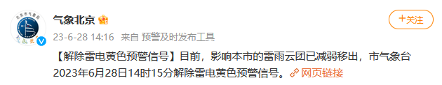 北京市氣象臺解除雷電黃色預警