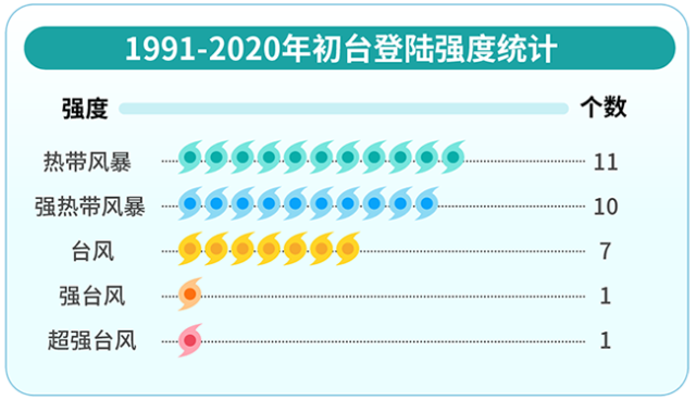 1991-2020年初臺登陸強度統(tǒng)計 丁茜制圖
