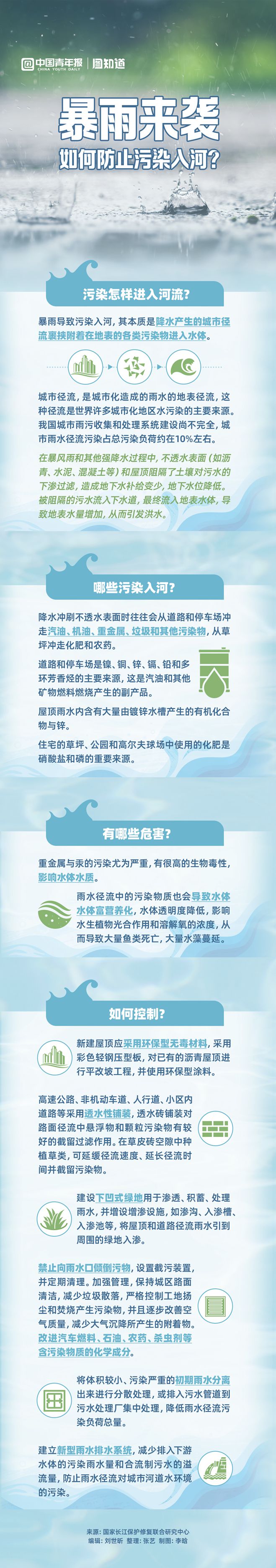 近日,臺風“杜蘇芮”給我國多地帶來暴雨甚至大暴雨。中央氣象臺今天繼續(xù)發(fā)布暴雨紅色預(yù)警。暴雨來襲,哪些污染物會被沖進河流?它們?nèi)绾斡绊懞恿?,又該如何控制?讀圖了解。