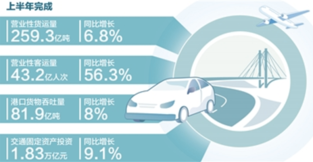 完成營(yíng)業(yè)性貨運(yùn)量259.3億噸,同比增長(zhǎng)6.8%;完成交通固定資產(chǎn)投資1.83萬(wàn)億元,繼續(xù)保持高位運(yùn)行……7月31日,交通運(yùn)輸部發(fā)布數(shù)據(jù)顯示,上半年,交通運(yùn)輸經(jīng)濟(jì)運(yùn)行穩(wěn)中向好,既有量的合理增長(zhǎng),也有質(zhì)的有效提升。
