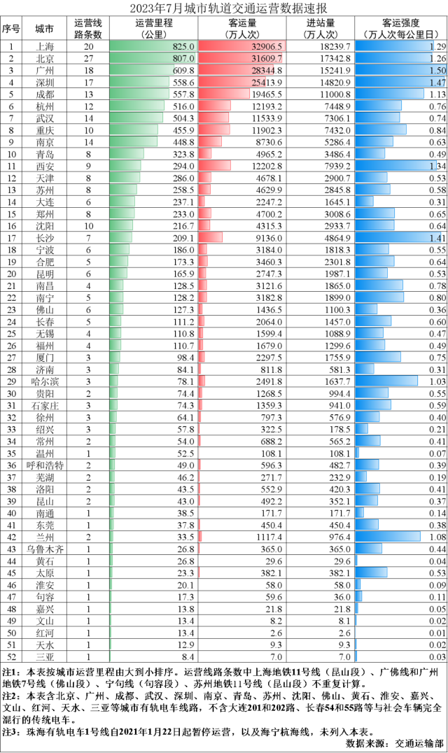 交通運輸部:7月全國城市軌道交通客運量同比增長36.4%