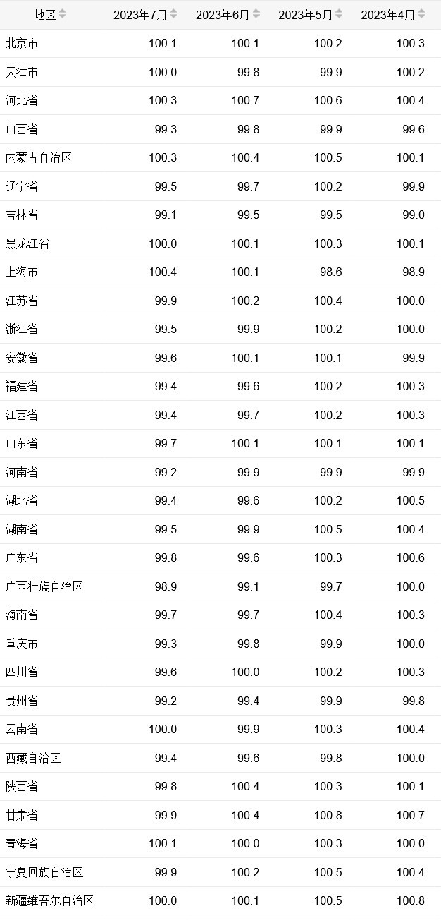 31省份7月CPI出爐:22地同比下降,4地“四連降”