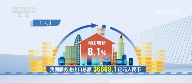 數(shù)據(jù)顯示,1月—7月,我國(guó)服務(wù)進(jìn)出口總額36669.1億元人民幣,同比增長(zhǎng)8.1%。