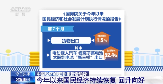報告指出,前7個月貨物出口同比增長1.5%,其中電動載人汽車、鋰離子蓄電池、太陽能電池“新三樣”出口合計增長52.4%。知識密集型服務(wù)貿(mào)易較快增長,旅行服務(wù)貿(mào)易明顯恢復(fù),上半年服務(wù)進出口同比增長8.5%。推動外資標(biāo)志性項目落地實施,外貿(mào)外資平穩(wěn)發(fā)展。