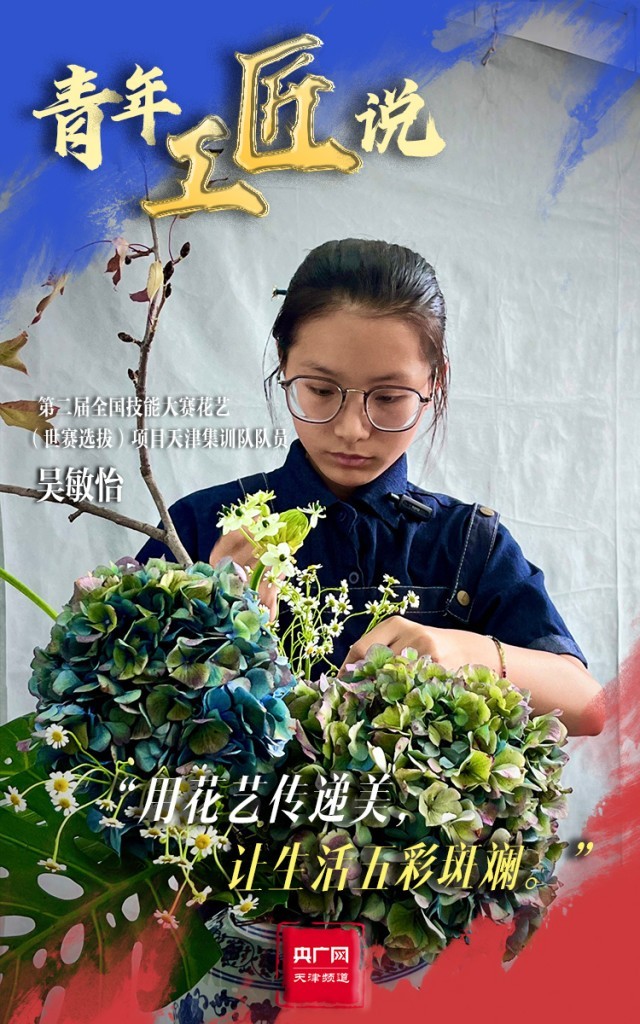 青春,是以工匠精神筑就美好生活的底色。走進(jìn)位于天津農(nóng)學(xué)院花藝(世賽選拔)項(xiàng)目的集訓(xùn)現(xiàn)場,生機(jī)盎然、芬芳馥郁,天津集訓(xùn)隊(duì)隊(duì)員吳敏怡正在挑選花材和花器,為每一件作品賦予一番獨(dú)特的意境。從2023年5月以來,吳敏怡每天要與花相伴12個小時,在審美及技術(shù)水平上的提高也讓她很有成就感。對于本次比賽,她也充滿期待:“我的目標(biāo)是起碼能拿一個優(yōu)勝獎,也是為了突破自己,讓自己的花藝技術(shù)更上一層樓?!彼f,她也將用花藝傳遞生活中的美,讓生活五彩斑斕。