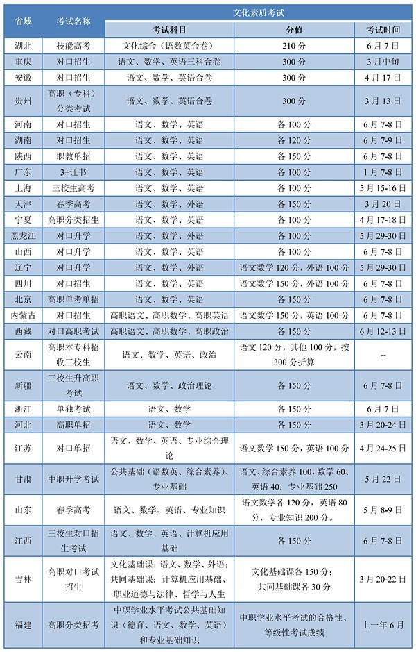 然而,對“職教高考”,各地叫法不一:分類考試、單獨招生、對口單招、五年一貫制、技能高考等。在考試對象上,有面對普通高中學生的,也有面對中職學生、技工學校學生和職教中心學生的;在考試內(nèi)容、考試時間、考試組織等形式上,各地甚至各校都不一樣。