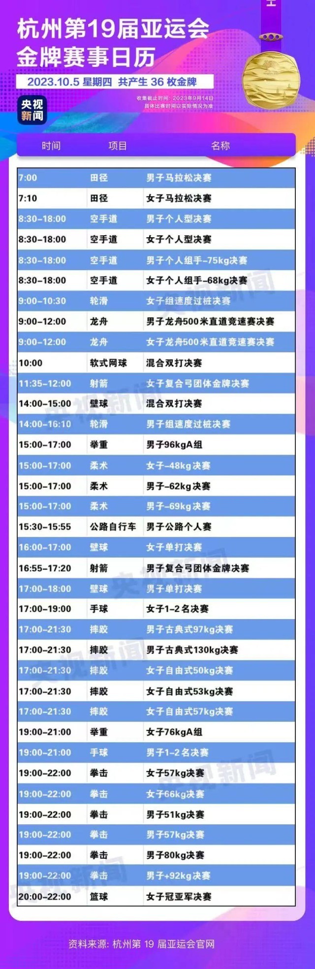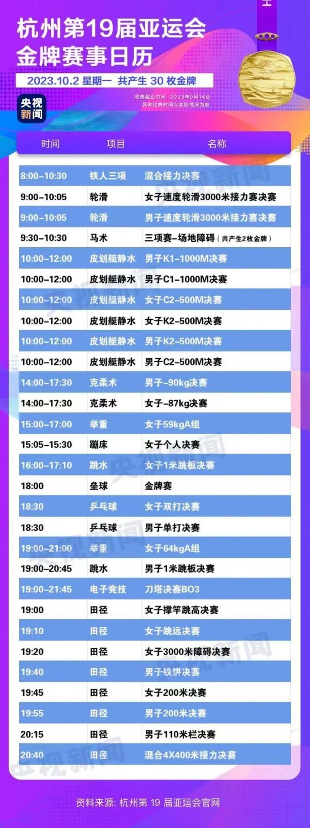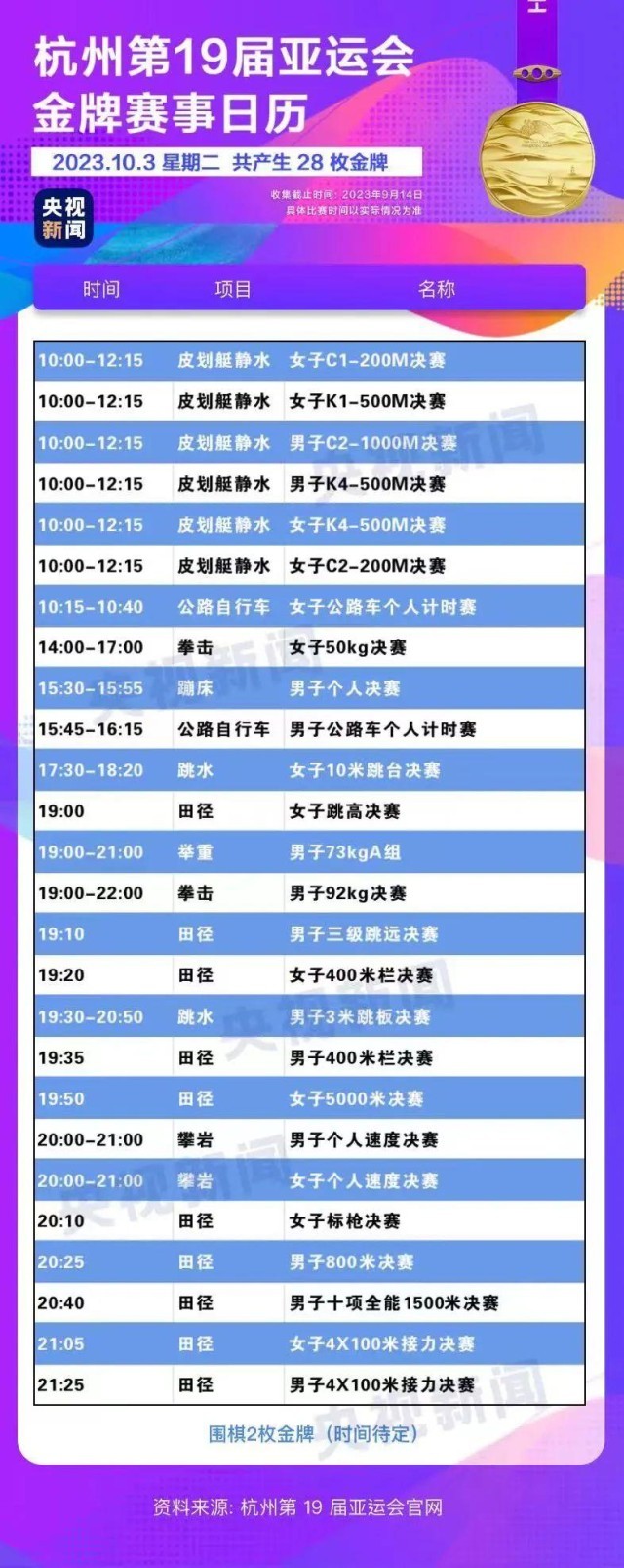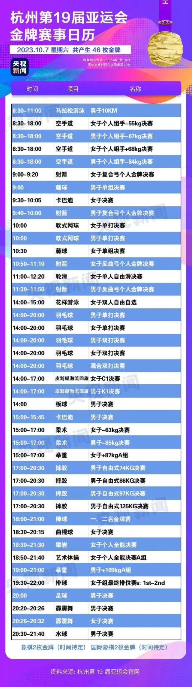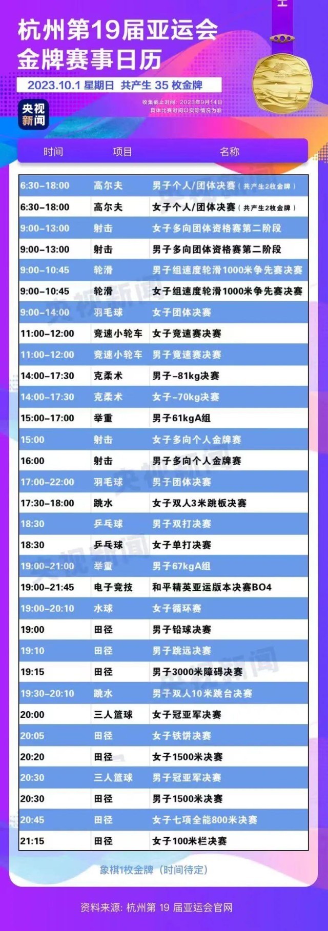 最后,小編還為你準備了一份杭州亞運會金牌賽事日歷,日歷里包含所有481枚金牌產(chǎn)生的時間。滑動手指,看看你關注的比賽在哪天舉行。